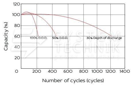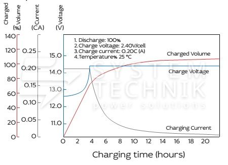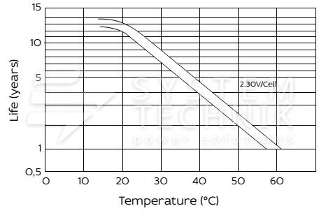- Срок хранения без подзаряда: 6 мес. при 25°C;