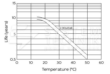 - Срок хранения без подзаряда: 6 мес. при 25°C;