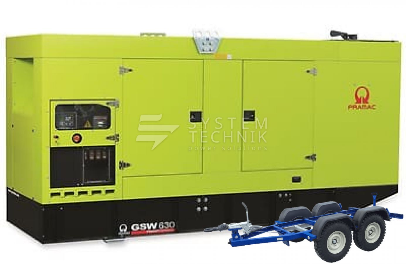 - Дизельный генератор Pramac GSW 630 DO 230V 3Ф В кожухе на прицепе