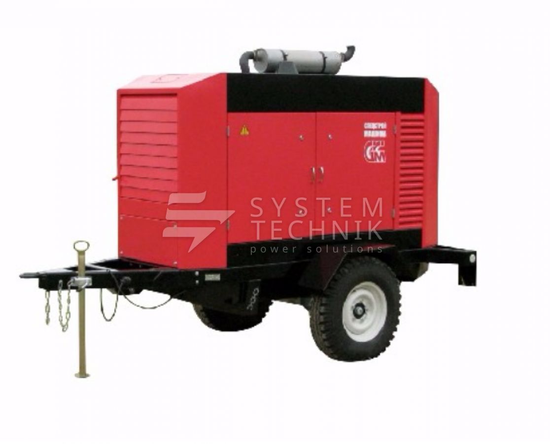 - ССМ ЭД-50-Т400-1РПМ1 в погодозащитном кожухе на шасси на прицепе